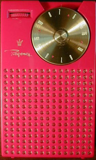 The seven transistor Regency TR-7 (above) was a perfect companion for picnics and play time. The handle rotated into a locked position behind the radio which allowed you to tip the radio speaker upwards. The 1958 radio shown in this photo still puts out a great sound.